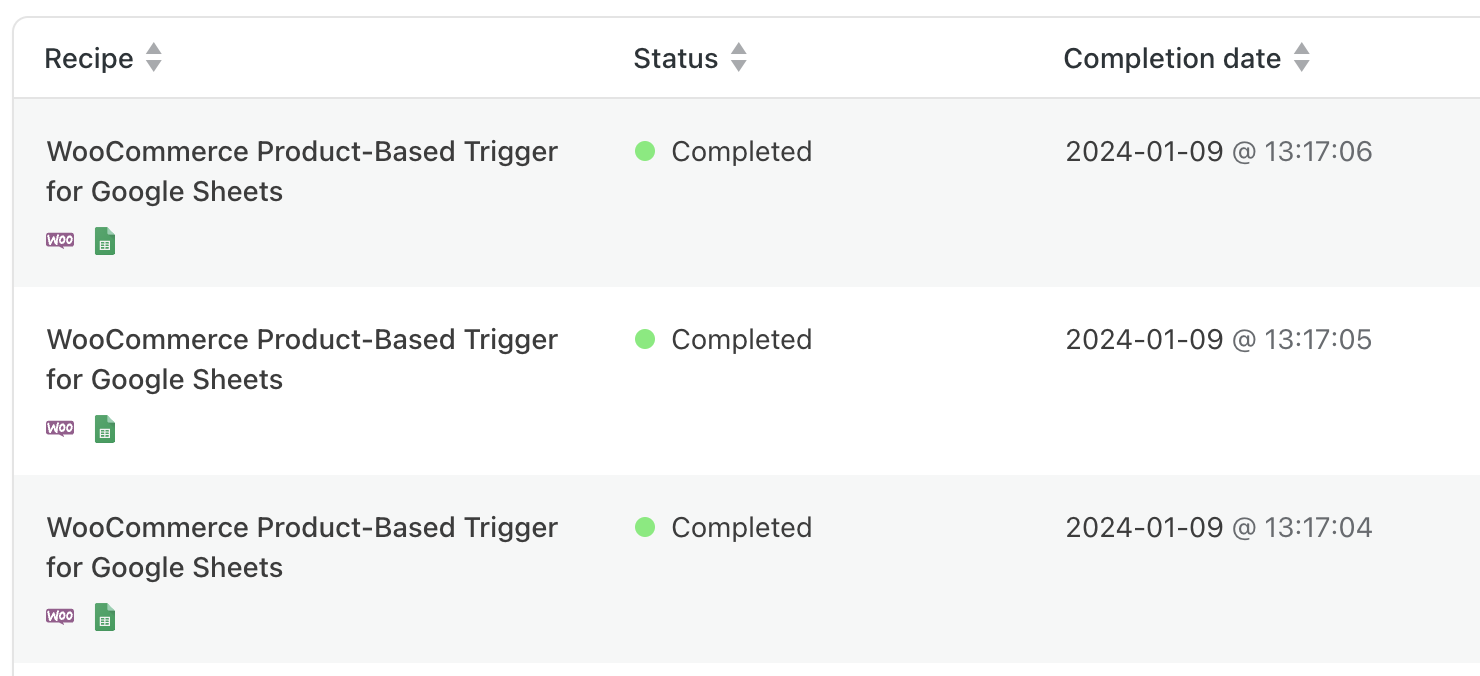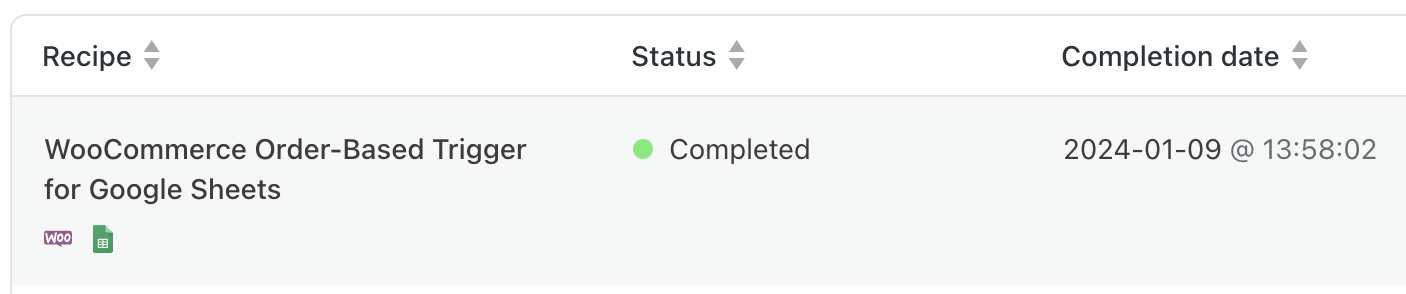 As opposed to product-based triggers, order-based WooCommerce triggers cause recipes to run just once. This is because it is the order itself, and not the product(s) within that order, initiating the automated workflow.